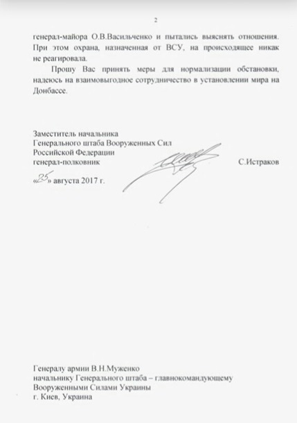 По данному случаю в адрес начальника Генерального штаба Украины генерала армии Виктора Муженко руководством российского военного ведомства было направлено соответствующее письмо.