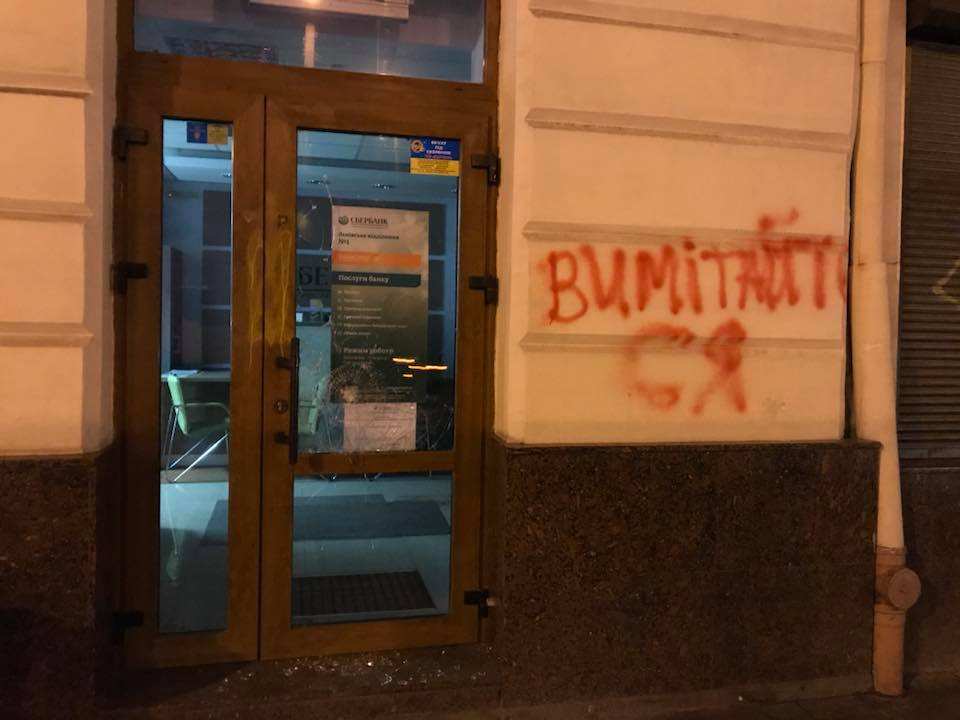 «Выметайтесь»: во Львове изуродовали здание «Сбербанка» (ФОТО)