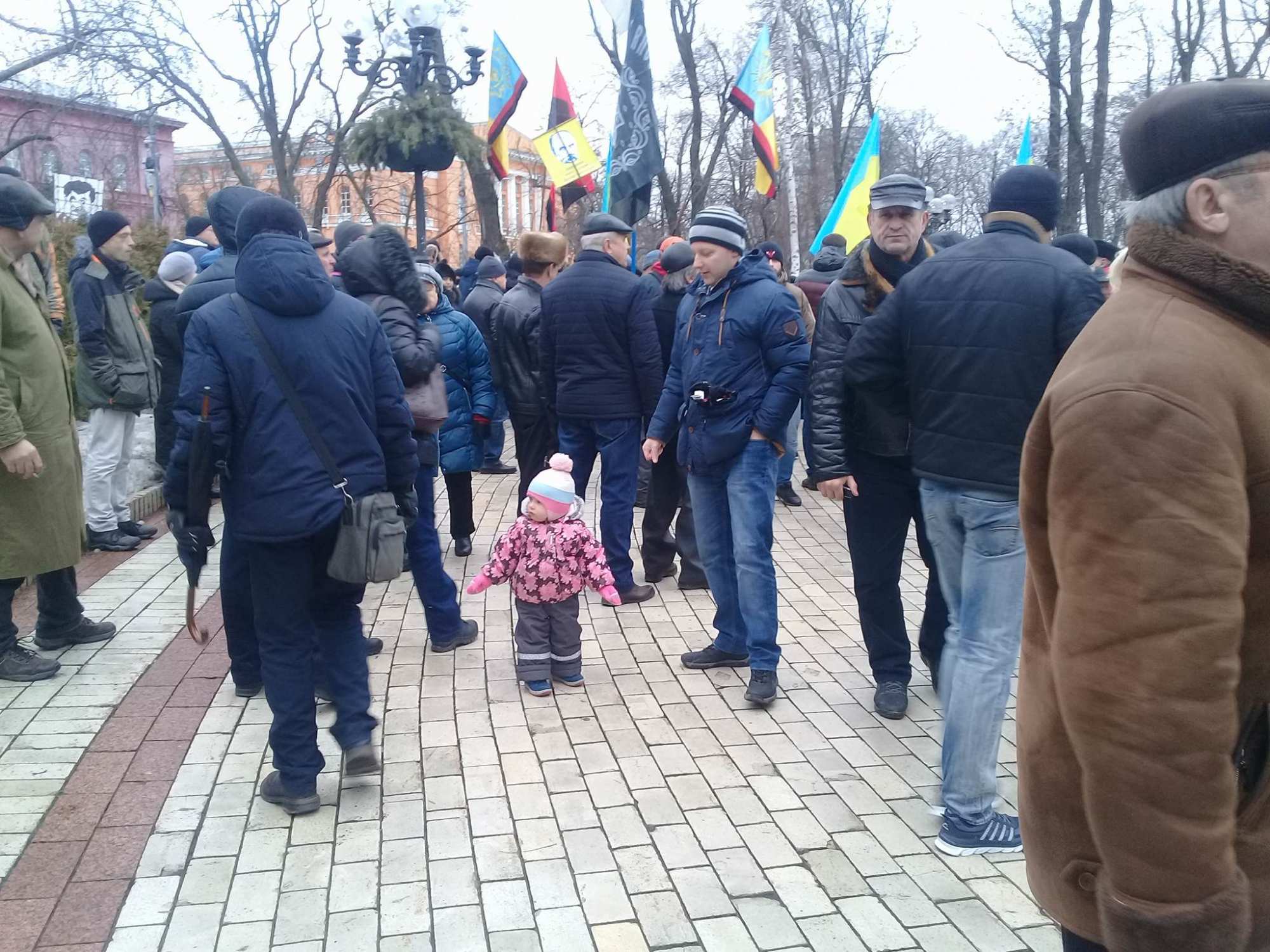 В колонне протестующих уже замечен флаг США и плакаты «Пока украинцы воюют, президент гуляет на Мальдивах?! Дезертира Порошенко в тюрьму!».