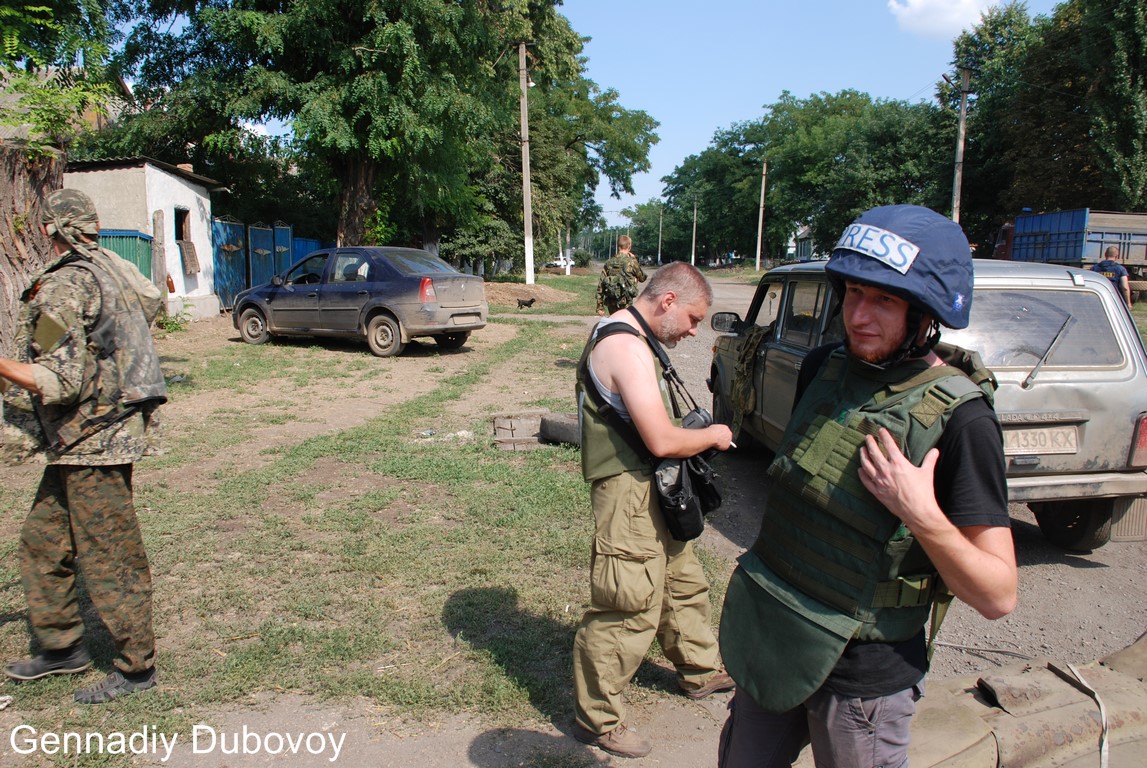 6 августа 2014 года военкоры Сергей Коренченков, Андрей Стенин и Андрей Вячало сопровождали к российской границе колонну беженцев, спасали женщин и детей. В тот день я должен был ехать с ними, не смог: мы с Артистом — водителем моего «джихад-мобиля» — получили приказ отправиться под Миусинск к месту недавнего боя, забрать брошенный бойцами «Утёс».