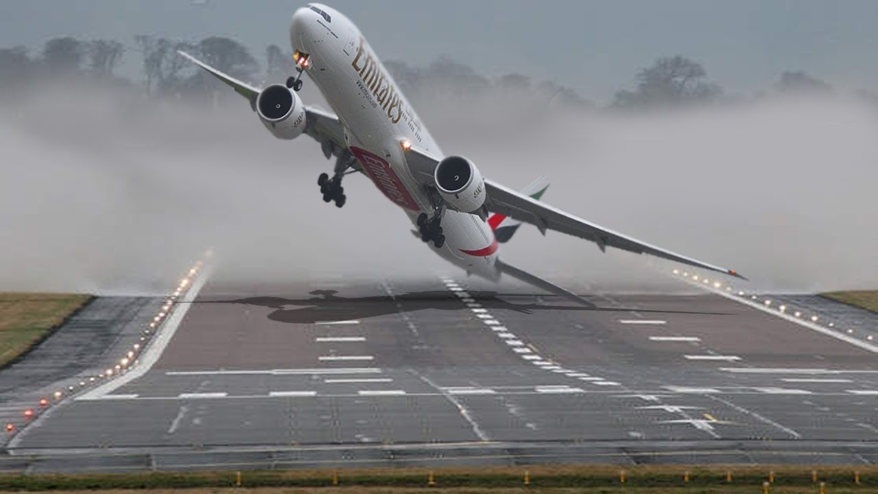В Сети появились кадры посадки крупнейших пассажирских авиалайнеров Airbus А380–800 авиакомпании Emirates в аэропорту британского Бирмингема во время сильного шторма 1 и 2 марта.