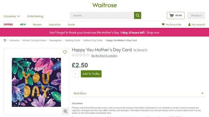 В британской сети супермаркетов Waitrose теперь продаются гендерно нейтральные открытки ко Дню матери.