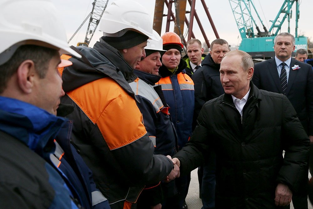 18 марта 2016 года — во вторую годовщину воссоединения Крыма и Севастополя с Россией — глава государства впервые осмотрел строительство моста через Керченский пролив и посетил стройплощадку на острове Тузла.