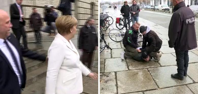 Мужчина бросился к Меркель, когда она вышла из здания Бундестага после выборов.