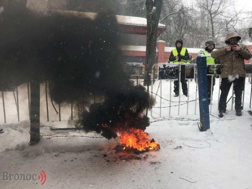 Сегодня, 18 марта, под зданием Генерального консульства России во Львове неонацисты сожгли мини-макет Москвы.