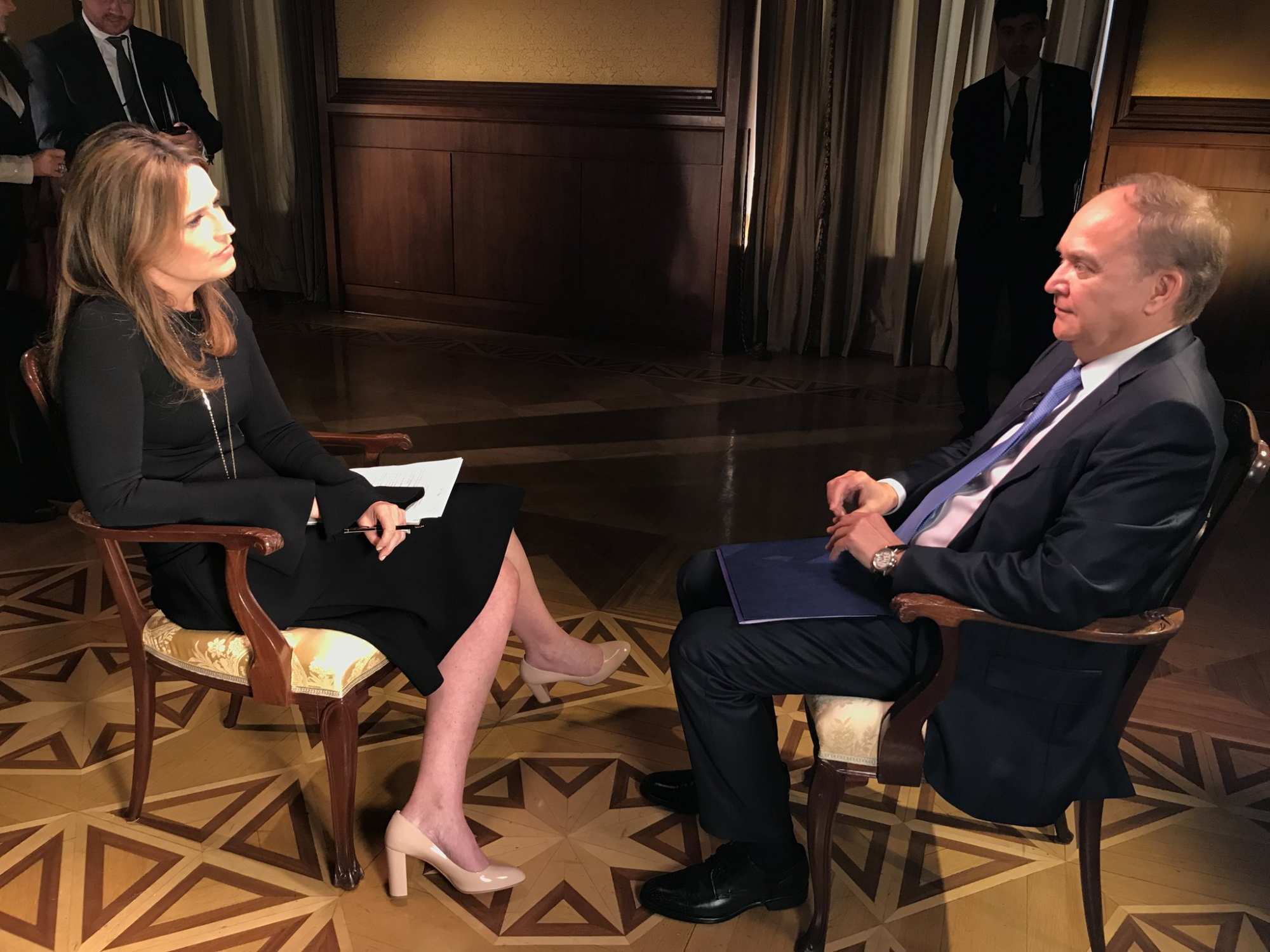 Анатолий Антонов и журналистка NBC Саванна Гатри, интервью, посвящённое взаимной высылке дипломатов.