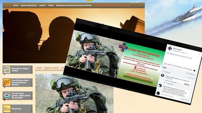 Подпись под фотографией: Военкоматы Глогова приглашают на подготовительную службу (фото WKU Głogów/Министерство обороны Российской Федерации, syria.mil.ru).