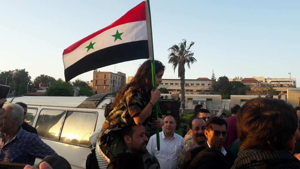 Сирийцы вышли на площадь Омейядов в Дамаске, чтобы порадоваться поражению Запада, осуществившего столь неэффективную агрессию. Люди выражают поддержку России и Сирийской армии.