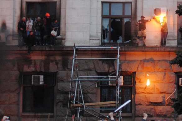 Участие в подготовке бойни этого зловещего персонажа не подвергается сомнению: есть видеокадры, как накануне он лично проверяет боеспособность прибывших в город боевиков, расставленных на стихийных блокпостах для защиты «от российской агрессии», но уже на следующий день забрасывавших Дом профсоюзов бутылками с горючей смесью.