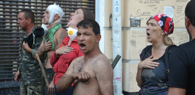 Как и всегда на подобных митингах, «активисты» портят имущество и вид городских улиц. Время акции было выбрано довольно странное: уже вечер, и вряд ли Медведчук находится в офисе.