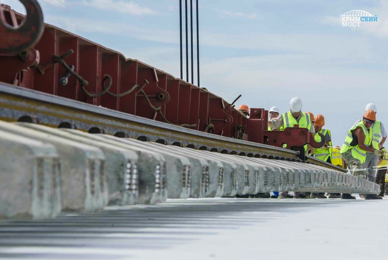 Укладка железнодорожных путей Крымского моста © most.life