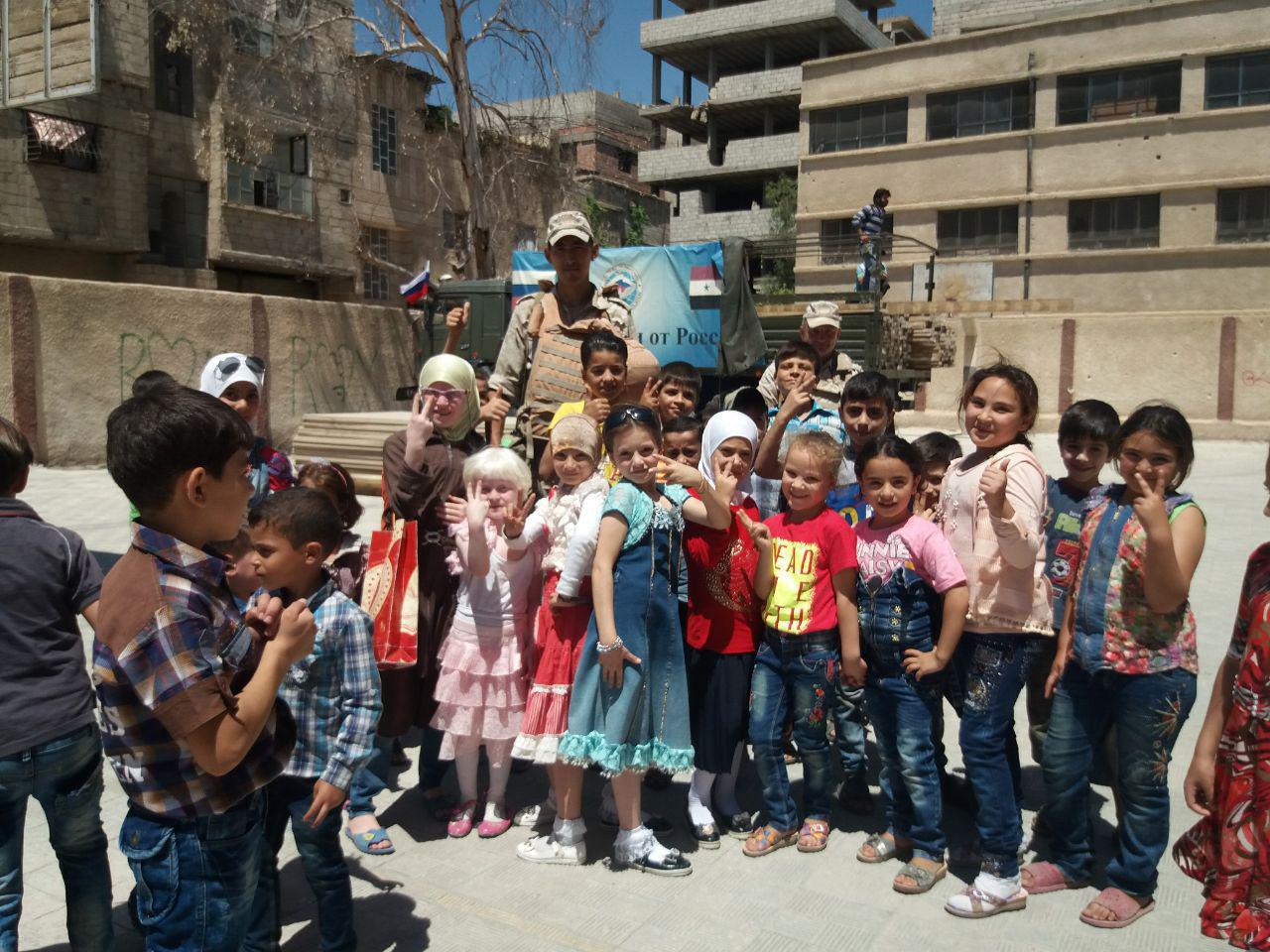 Необычную встречу для российских военных устроили бывшие боевики и их дети в освобождённом от банд районе под Дамаском.