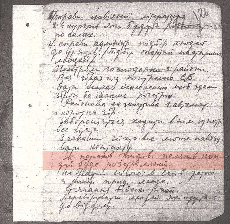 Для лучшего понимания, чем занимался Арсенич, можно привести записки служащего СБ ОУН, хранящиеся в госархиве Ровно. Конспект был сделан в июле 1943 — в разгар национально-освободительной борьбы: «За укрытие ж_дов и поляков каждый будет расстрелян». «До 20 июля очистить территорию от поляков».