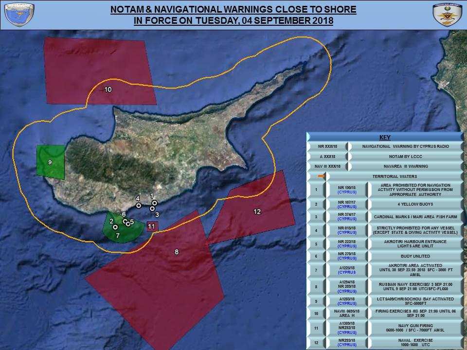 Одновременно с этим на западных ресурсах появилась информация о том, что российский ракетный крейсер Северного флота «Маршал Устинов» с юга и юго-востока «заблокировал» воздушное пространство королевской авиабазы Акротири — военной базы Великобритании на острове Кипр, с которой в апреле были совершены налёты на Сирийскую Арабскую Республику.