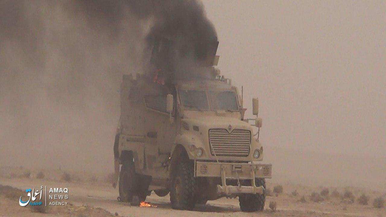 Во время боев у селения Шаафа в районе сирийско-иракской границы SDF бросили свои оборонительные позиции и бежали на территорию Ирака. Также террористы ИГИЛ смогли уничтожить уже вторую бронемашину International MaxxPro (см. фото 1), поставленную американцами.