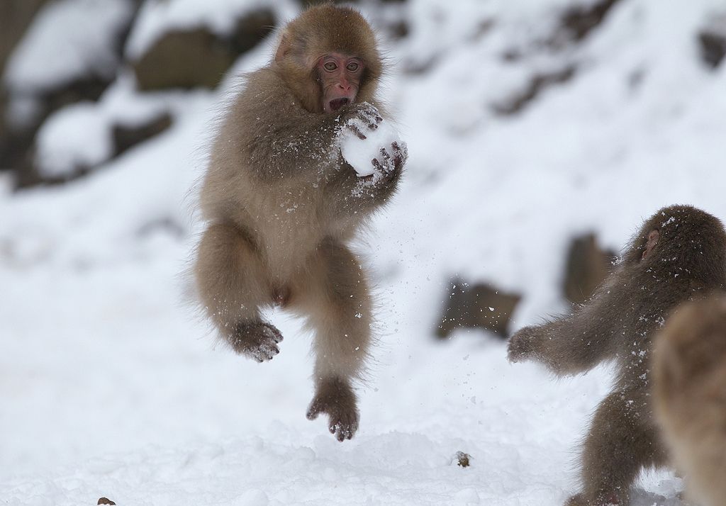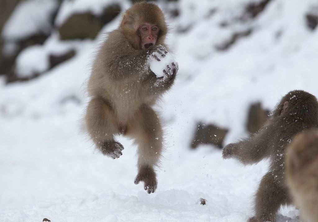 Японские макаки привлекают туристов со всего мира своей привычкой купаться в горячих источниках зимой. Несмотря на то, что они обладают густой шерстью, холода они не любят. Видимо, поэтому они и изобрели такой необычный способ избежать соприкосновения со снегом.