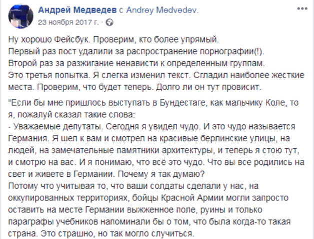В завершение история о том, как Facebook относится к истории в попытках её переиграть, прям как немецкие газетчики в истории про Ленинград.