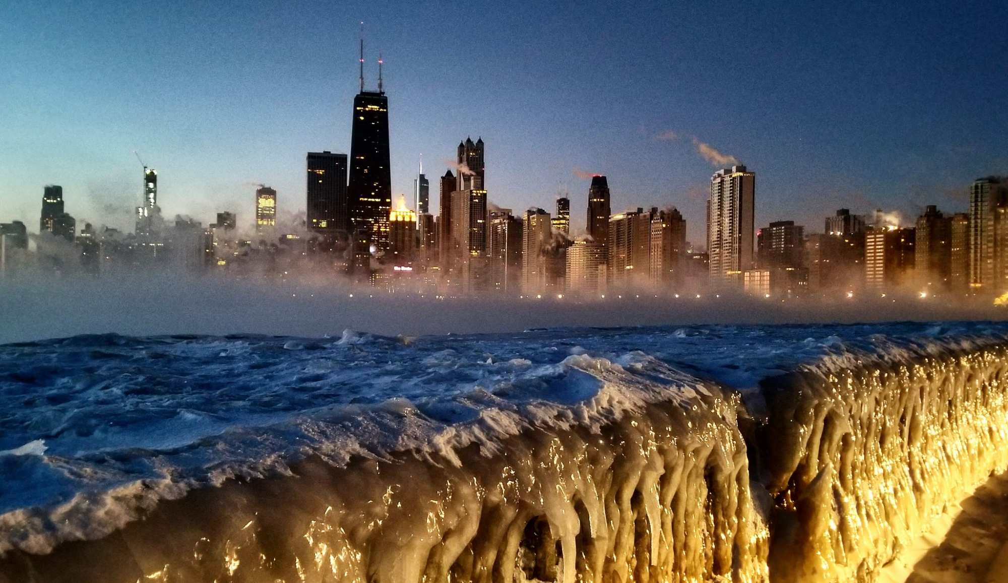 В Чикаго установлен рекорд 100-летней истории метеонаблюдений, -29 градусов. Здесь местные власти приняли решение поджечь замёрзшие ж/д рельсы, чтобы пути оттаяли и по ним смогли ходить поезда.
