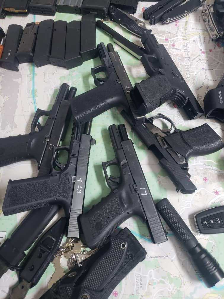 При них были обнаружены 6 автоматических винтовок, пистолеты «Глок», боеприпасы, 5 бронежилетов, иное военное снаряжение, 2 профессиональных дрона-беспилотника, индивидуальные средства связи, несколько номерных знаков Гаити и 2 автомобиля. Двое задержанных имели при себе паспорта Госдепартамента США, они отказываются отвечать на вопросы правоохранителей.
