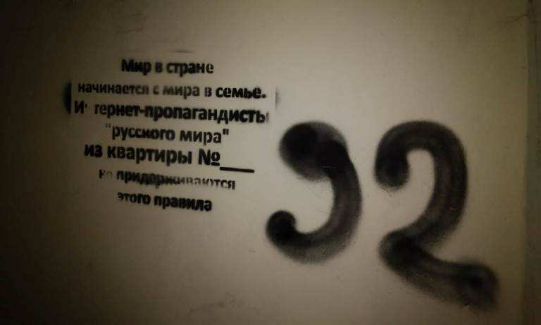 В Сети тем временем появляются фотографии трафаретных надписей из краматорских подъездов, в которых утверждается, что в той или иной квартире живёт «сепар» — сторонник русского мира.