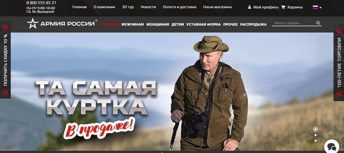 В фирменных магазинах «Военторг» появилась в продаже модель куртки, в точности повторяющая ту, в которой президент России Владимир Путин ездил на рыбалку в Туву.