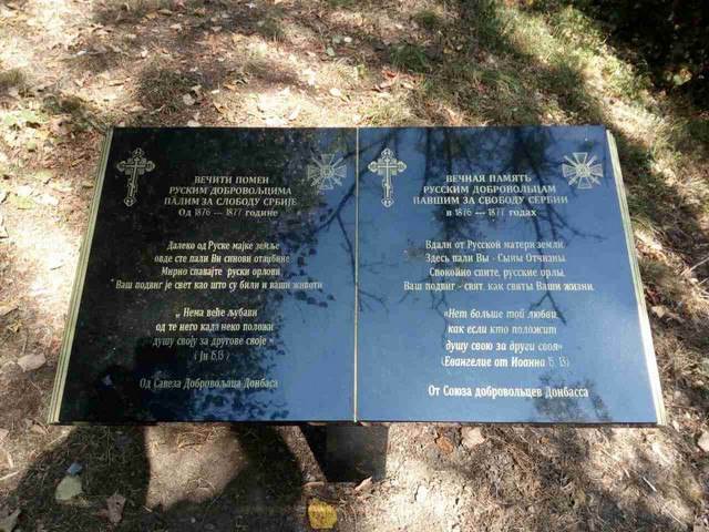 Всего в Сербии установлено три памятника русскому добровольческому движению. Силами Союза добровольцев Донбасса были собраны средства на установку мемориала героям-защитникам, что сложили голову за свободу этой страны во время сербского восстания 1876–77 годов против Османской империи и героям уже современных войн.