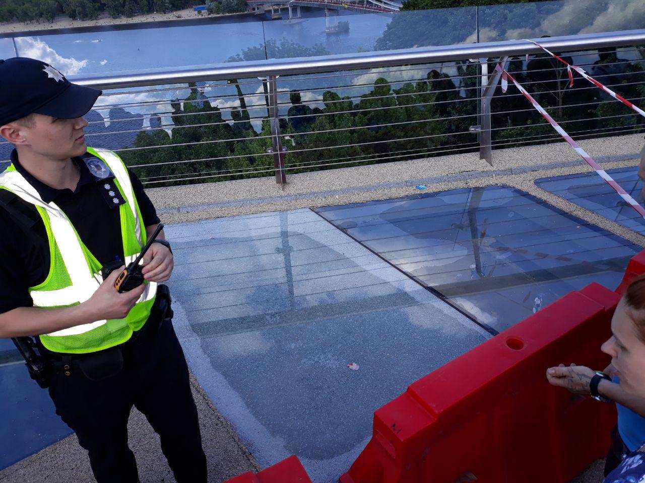 27 мая на пешеходном мосту в Киеве, открытом позавчера мэром города Виталием Кличко, произошло очередное ЧП: в тот момент, когда рабочие меняли две треснувшие стеклянные секции, «устала» ещё одна.