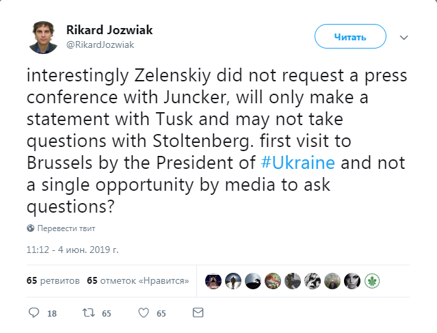 «Интересно, что Зеленский не просил пресс-конференции с Юнкером, только сделает заявление с Туском и не будет отвечать на вопросы со Столтенбергом.