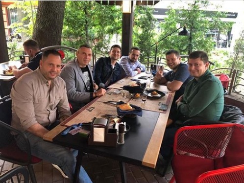 Накануне, в День Конституции Украины, Зеленский выложил в социальной сети Facebook фотоотчет, на котором в компании главы администрации Андрея Богдана, первого помощника Сергея Шефира и других друзей сидит за столом в одном из баров.