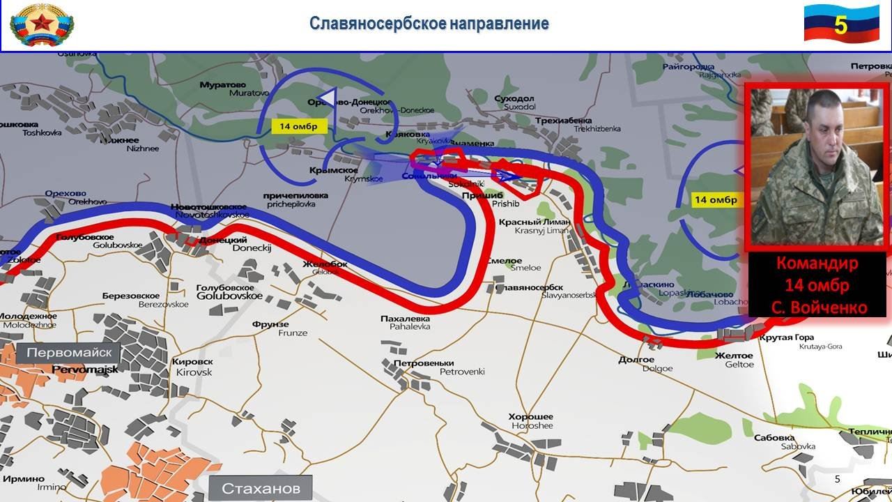 На попаснянском направлении по приказу командира 54 механизированной бригады Майстренко обстрелам из 120 и 82 мм минометов, гранатометов различных видов и крупнокалиберного оружия подверглись районы населённых пунктов Первомайск, Золотое-5, Калиново и Калиново-Борщеватое.