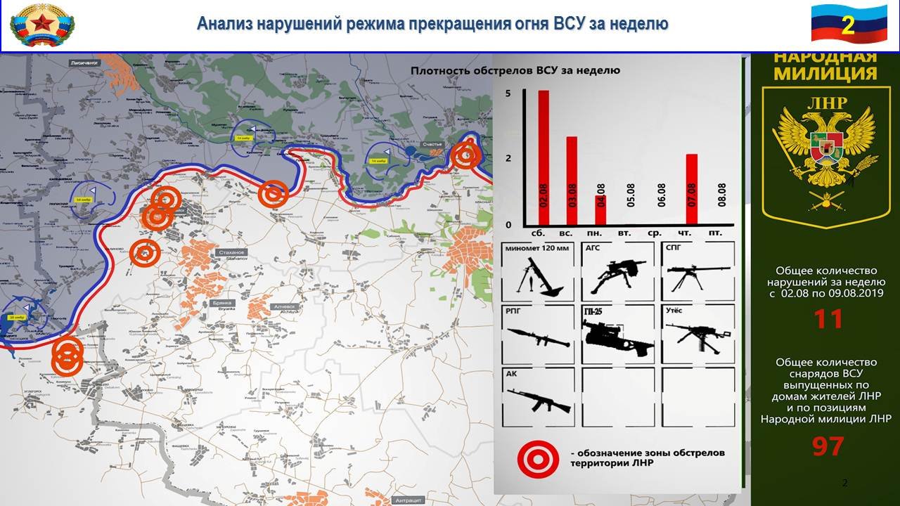 На попаснянском направлении по приказу командира 54 отдельной механизированной бригады Майстренко из гранатомётов различных видов и стрелкового оружия были обстреляны районы н.п. Калиново, Первомайск и Золотое-5.
