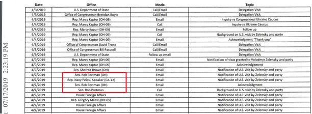 В отчете лоббистов из Signal Group указано, что среди прочих мероприятий компания «обрабатывала» сенатора от штата Огайо Роба Портмана. В отчете указано, что с ним велась переписка по электронной почте, а также были проведены телефонные переговоры по вопросу визита Зеленского и его партии: