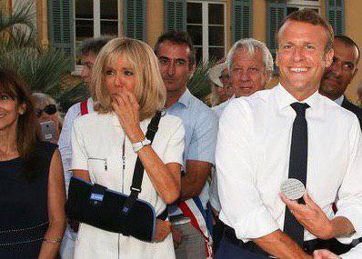 Супруга Макрона встретит российского лидера в бандаже — недавно она вывихнула руку.