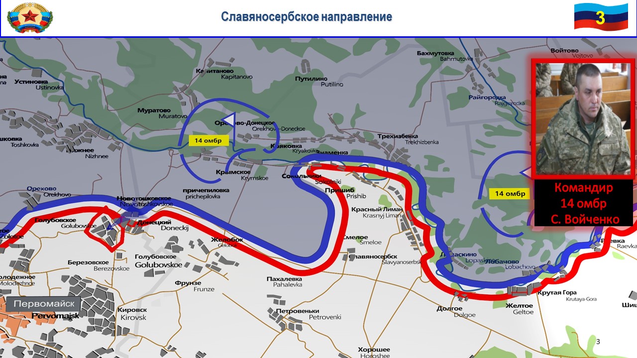 На славяносербском направлении по приказу командира 14 отдельной механизированной бригады Войченко противник обстрелял из гранатометов различных видов и крупнокалиберных пулеметов населенный пункт Голубовское.