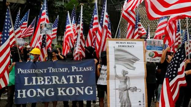 В Гонконге, возле генерального консульства Соединённых Штатов Америки, демонстранты обратились за помощью к президенту США Дональду Трампу. Об этом сообщает информационное агентство BBC.