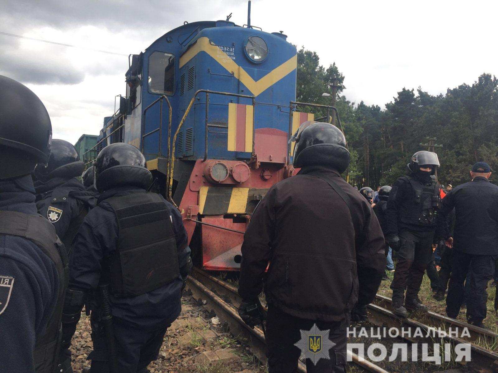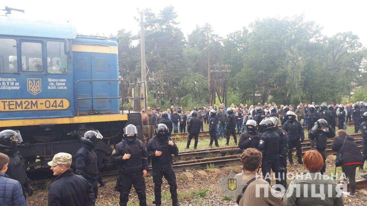 Полиция разогнала сторонников бывшего нардепа Семена Семенченко, блокировавших железнодорожные пути на станции Сосновка в селе Селец во Львовской области.