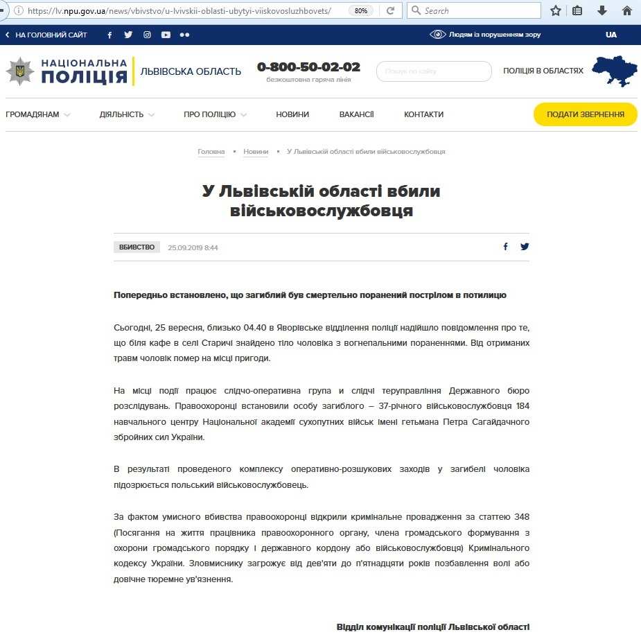 Также сообщается, что в убийстве подозревается польский военнослужащий, который в ходе бытового конфликта застрелил украинца и скрылся с места происшествия с оружием.
