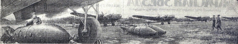 Тяжелые бомбардировщики части под командованием Героя Советского Союза подполковника Э.К. Пусэпа готовятся к боевому вылету. Фото из газеты «Красная звезда», № 192 (5583) от 15 августа 1943 г.