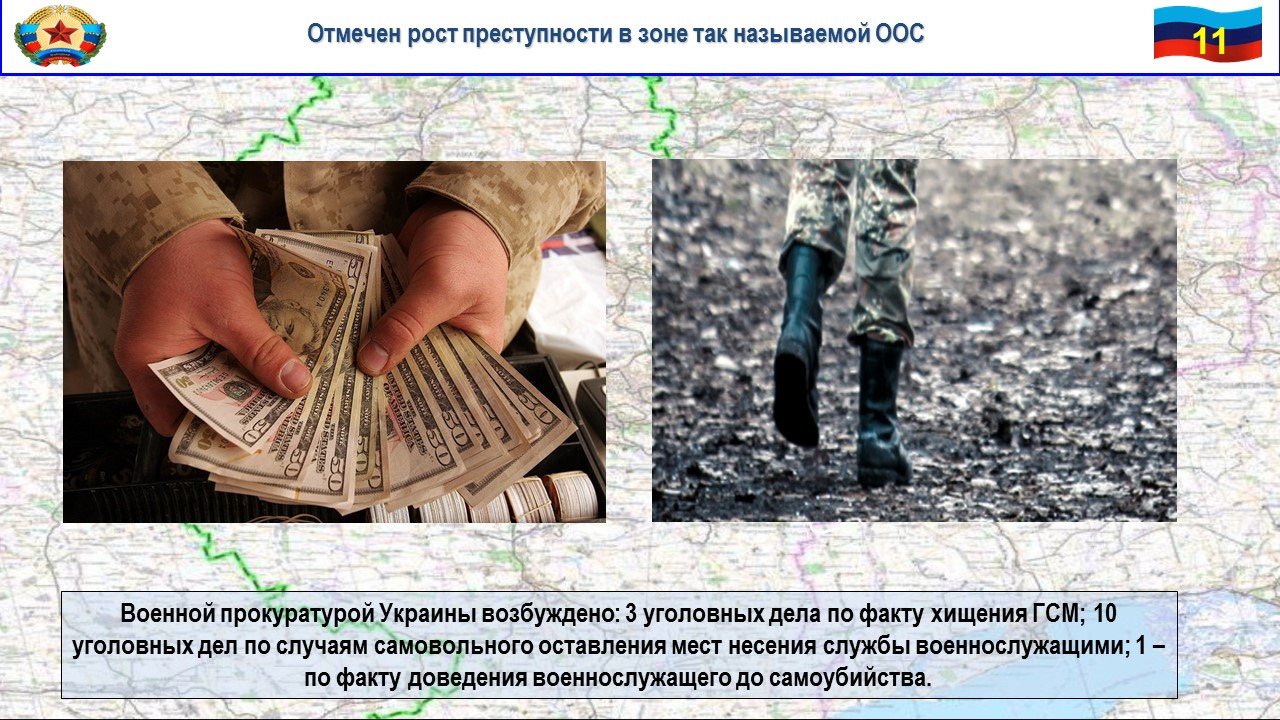 Так, 25 сентября при оборудовании фортификационных сооружений в районе н.п. Троицкое военнослужащий 11 батальона 59 мотопехотной бригады ВСУ рядовой Думенко самовольно покинул пункт временной дислокации со штатным оружием АКС-74.