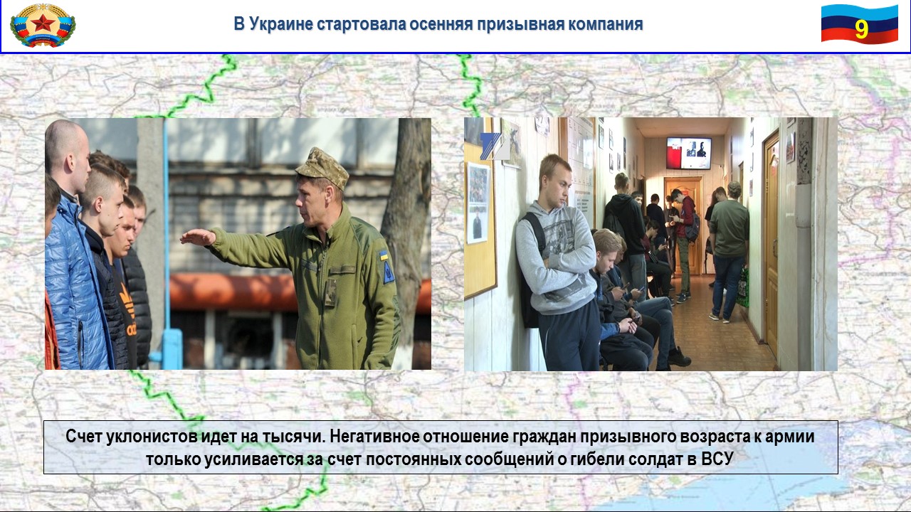 По сообщениям украинских СМИ, счет уклонистов идет на тысячи. Негативное отношение граждан призывного возраста к армии только усиливается за счет постоянных сообщений о гибели солдат, разного рода коррупции и дедовщины в их рядах.
