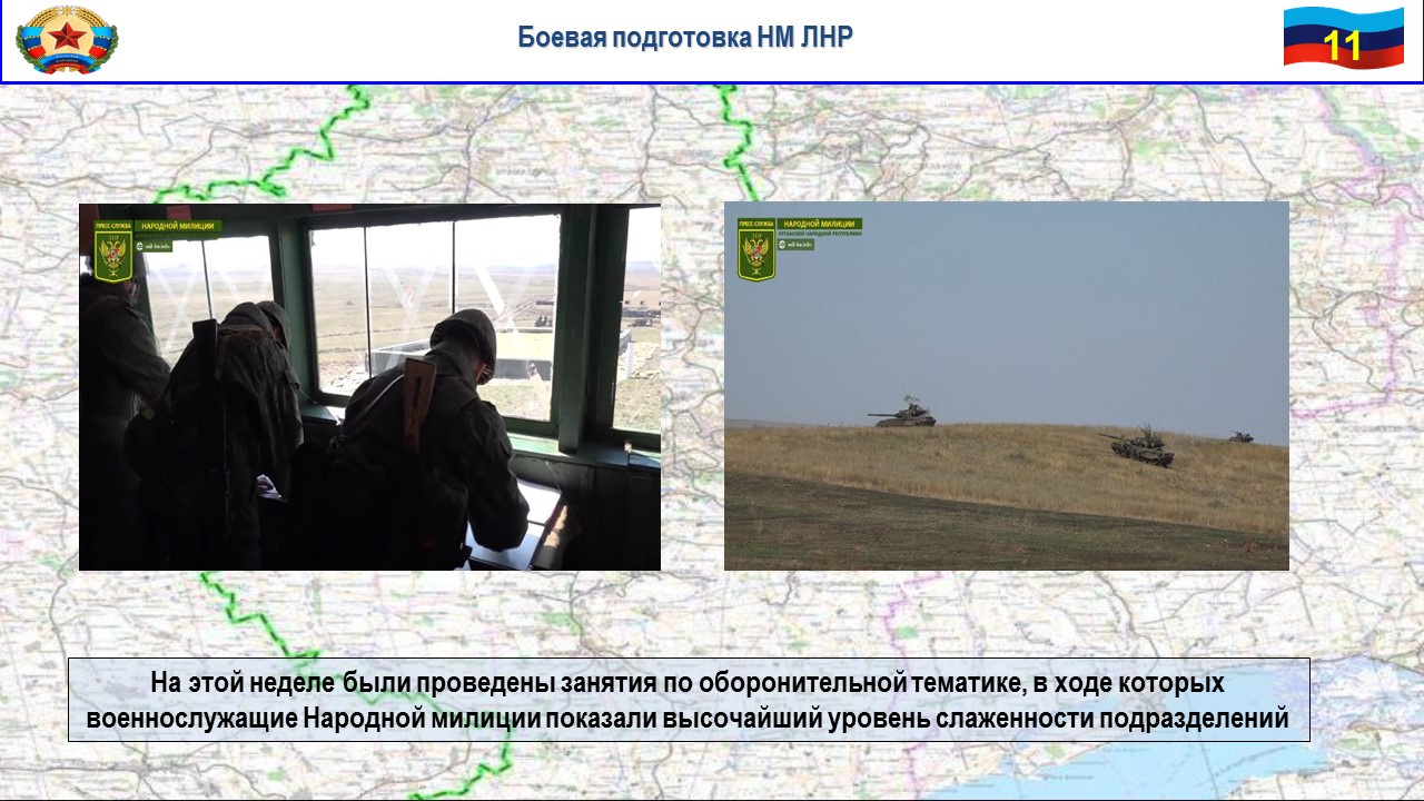 На этой неделе с подразделениями Народной милиции были проведены занятия по оборонительной тематике на одном из полигонов, в ходе которых военнослужащие Народной милиции показали высочайший уровень слаженности подразделений, четко, быстро и безошибочно выполнив учебную задачу и продемонстрировав тем самым готовность в любой момент защитить государственный суверенитет Луганской Народной Республики и безопасность её жителей.