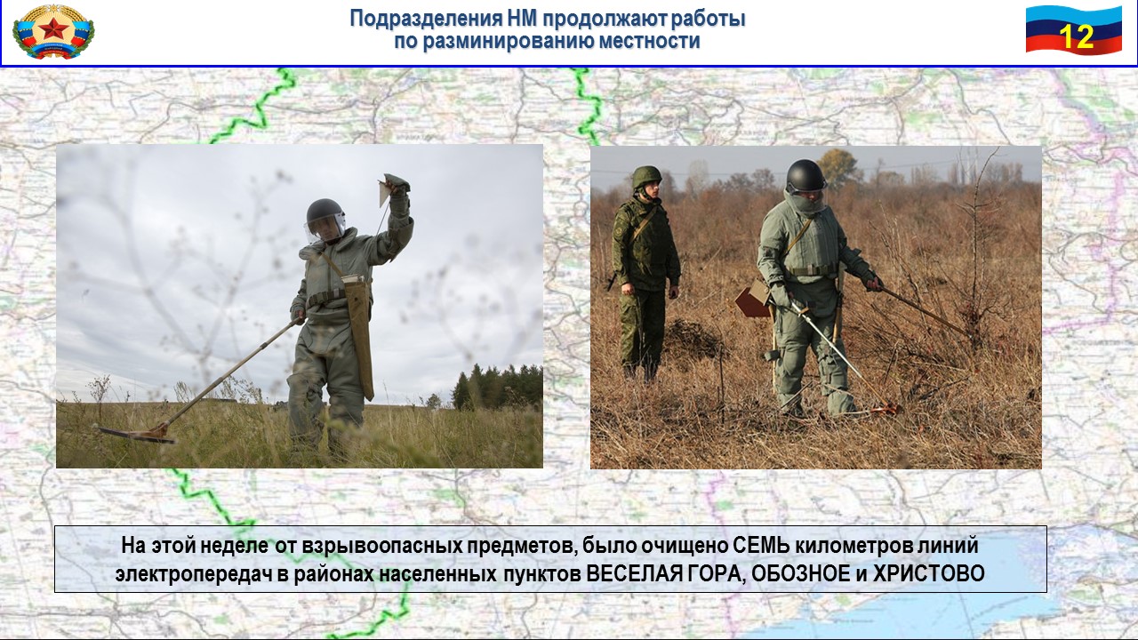 Так, на этой неделе от взрывоопасных предметов было очищено семь километров линий электропередач в районах населенных пунктов Веселая Гора, Обозное и Христово.
