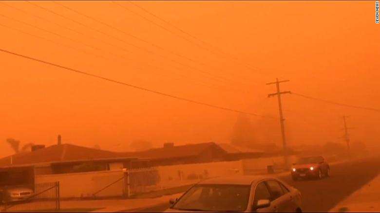 На австралийский город Милдьюра, штат Виктория, обрушилась пылевая буря, сила ветра достигала 40 км/час, а температура воздуха — +40 градусов.