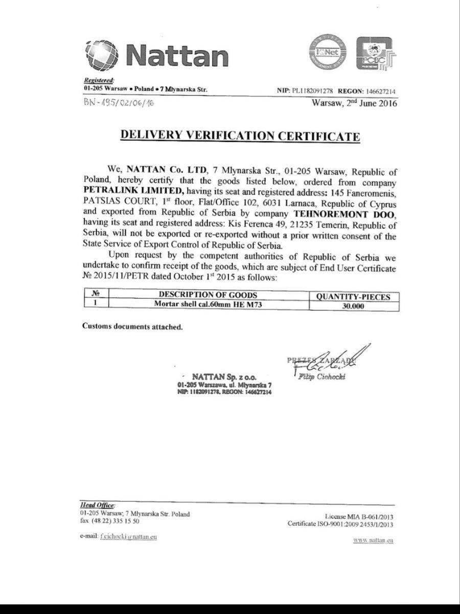 По ее данным, сделка осуществлялась с согласия МВД, БИА (Агентство информационной безопасности — РВ), Минобороны и министерства Общих дел и торговли Сербии.