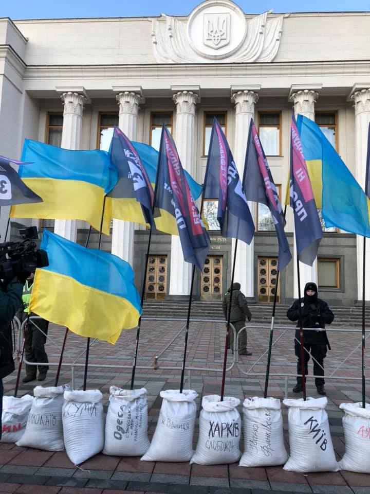 По словам Савченко, противникам открытия рынка земли не дают возможности выступить с трибуны Рады. Поэтому активисты вынуждены были привезти мешки с землёй со всех регионов Украины, и якобы даже из Крыма, чтобы устроить пикет под стенами парламента.