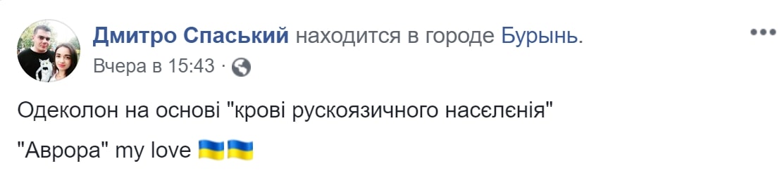 «Одеколон на основе „крові рускоязичного насєлєнія“», — прокомментировал он снимок.