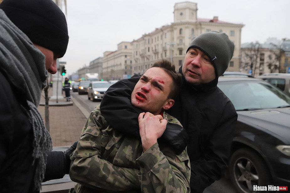 И они пролили эту кровь. Противником оказался белорус, позволивший себе возразить демонстрантам и произнести всего лишь два слова: «Россия, вперёд!».