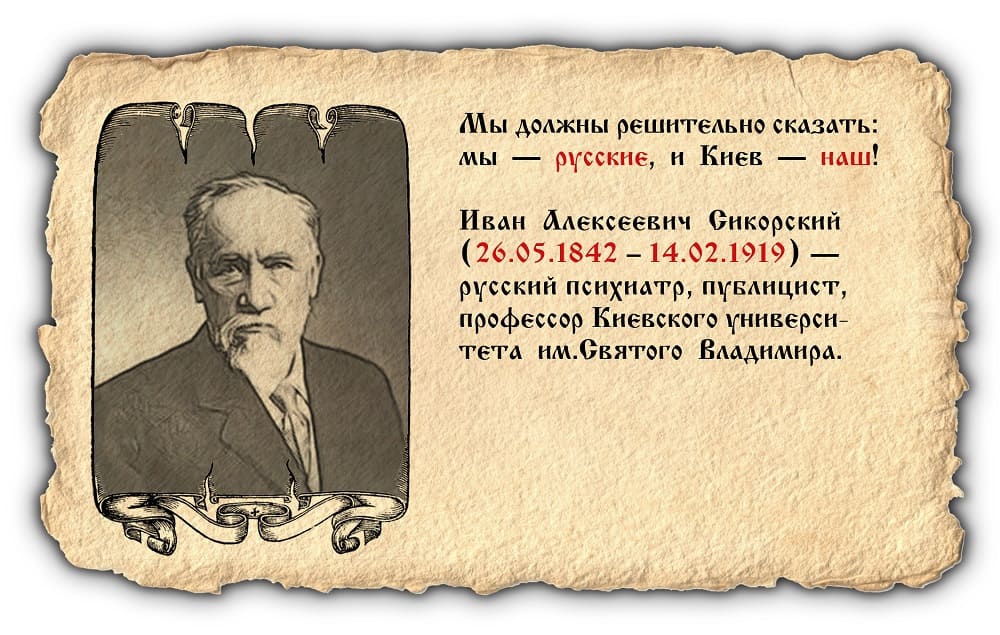 А вот отец Игоря Сикорского — Иван Алексеевич Сикорский — до конца своей жизни был одним из самых ярких, значимых и выдающихся борцов с «украинством» и «украинской идеей».