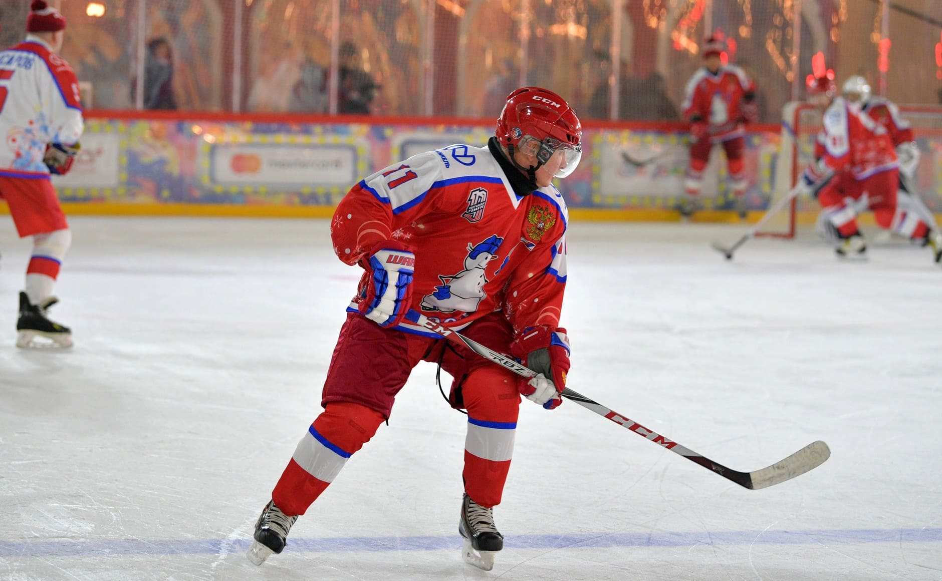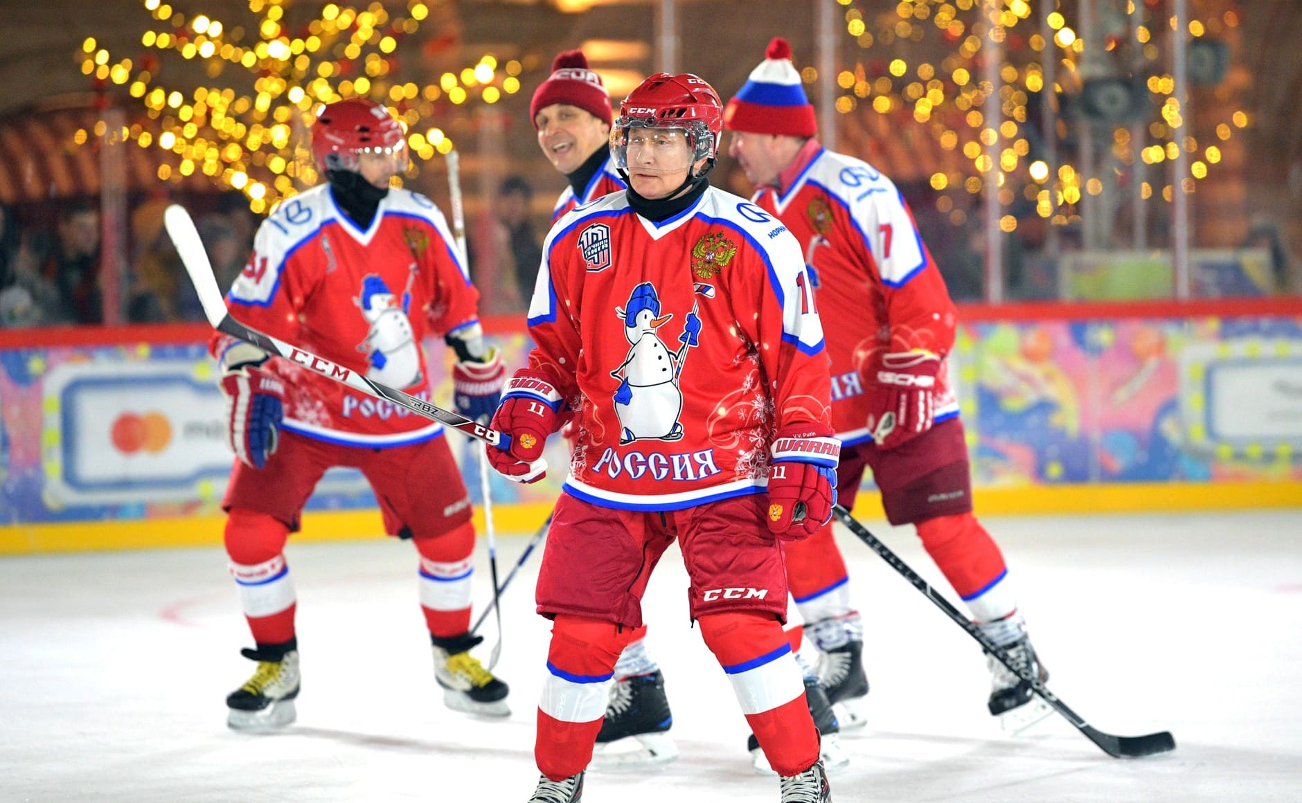 Президент России Владимир Путин принял участие в матче Ночной хоккейной лиги, который прошёл в ночь на 25 декабря на катке на Красной площади.