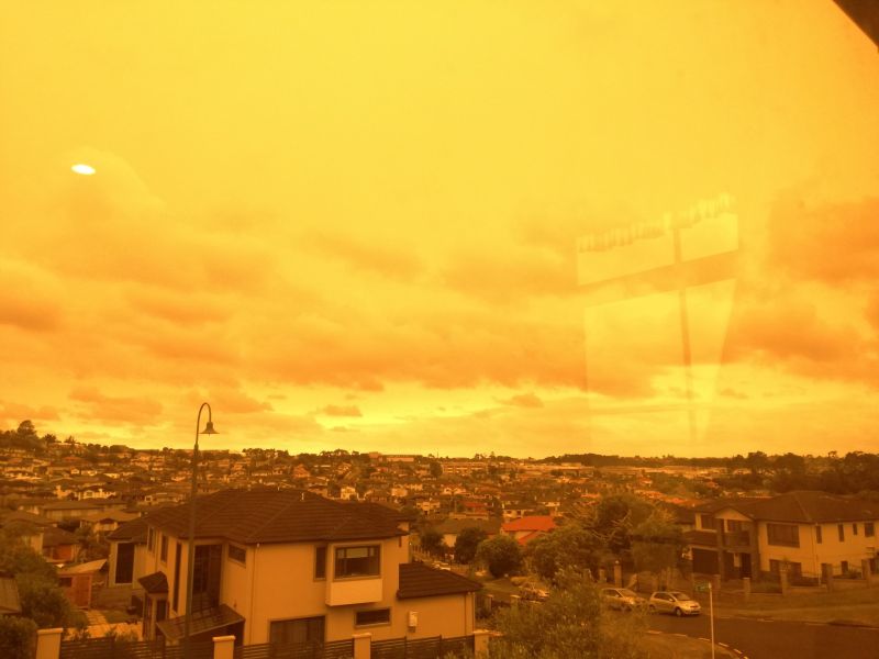 Жительница новозеландского города Окленд запостила в Twitter фото, на котором запечатлен вид из окна в оранжевых тонах.